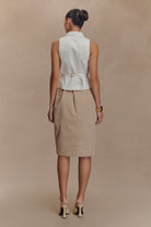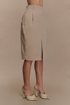 Vera Twill Split Front Midi Skirt - Camel