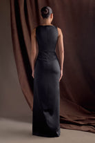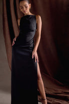 The VIOLET Sleeveless Satin Maxi Dress is the epitome of understated glamour. Designed with a sleek, fitted bodice that contours the frame, this silhouette flows effortlessly into a straight-cut skirt for a refined finish. A side leg split adds a touch of allure, creating movement with every step. Finished with a discreet back zip for a seamless fit, this dress is perfect for elegant soirées, formal occasions, or modern bridal celebrations.