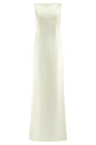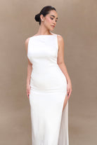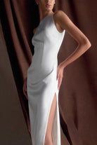 The VIOLET Sleeveless Satin Maxi Dress is the epitome of understated glamour. Designed with a sleek, fitted bodice that contours the frame, this silhouette flows effortlessly into a straight-cut skirt for a refined finish. A side leg split adds a touch of allure, creating movement with every step. Finished with a discreet back zip for a seamless fit, this dress is perfect for elegant soirées, formal occasions, or modern bridal celebrations.