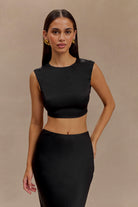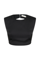 Viviana Satin Sleeveless Crop Top - Black