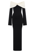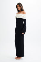 The YOKO Contrast Knit Maxi Dress is a stunning blend of style and sophistication. Featuring an off-shoulder neckline and a foldover ruched front, this dress elegantly accentuates your silhouette while adding a touch of texture and visual interest. The maxi length creates a graceful and elongated look, making it perfect for both formal events and chic casual outings. This dress is designed to make a statement with its contrast knit and timeless appeal.