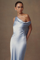 Yvette Slip Maxi Dress With Asymmetrical Hem - Cornflower Blue