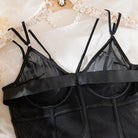 Complementing the bra are matching panties that echo the same lace and mesh detailing. Designed for a flattering fit, these panties provide minimal coverage while accentuating your curves in a subtle, sophisticated manner.
