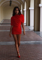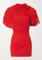 The Zyanira Mini Dress combines modern elegance with a playful twist, featuring an asymmetrical hem and intricate pleating that adds dynamic texture. Designed to make an impression, this dress is perfect for any stylish occasion.